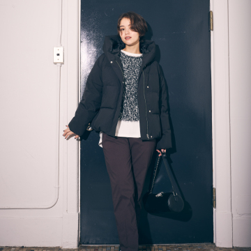 ダウンのステッチ幅にもこだわり、細見えするキレイ目シルエットに仕上げました。